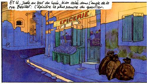 Un regards sans cadre sur la chaussée, au carrefour, et un autre plus petit sur le trottoir. (In «CLARA - Faux-fuyants», page 40, de CHAUZY et Lapierre Ed. Casterman - 1999)