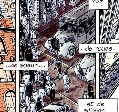 L'action de cet album se situe à New York, au début du XXème siècle. Les regards y ont leur place normale dans les scènes de rues, et ce dès la seconde page de couverture et la page de titre.